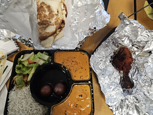 Went to pick up a non-veg lunch special. It was $17.75 including taxes (plus the forced tip which is very interesting as it was a pick up order; tips should be optional). I gkt one naam, one tandoori drumstick, rice, buter chicken, daal makhni, and a heave of salad. The food tasted basic and all items were high in sugar content. The worst part was the packaging. Please see the attached picture. Is the dessert meant to be eaten with the rice and salad?! This is a lunch special and given the downtown location it is a no-brainer that its mostly office going folks are ordering it for eating right out of the container. How is a person supposed to eat rice and naan with curries where the gulab jamum was smack in the middle? It was purposely done as the middle section is larger compared to the side sections so that they dont have to fill that with a curry. Well you sont have to fill the sections to the brim anyways! It is very difficult to eat with the sweet syrupy dessert in the middle. No cutlery provided and wasn't even asked if I needed any. Its lunch special!! Not a to go family style order. The competitors around this area sells there lunch deals for $13.95 plus tax or less. This was unusually high for price (I wasnt offered the price on the phone when ordering and when I showed up there was only two customers in the whole restaurant.