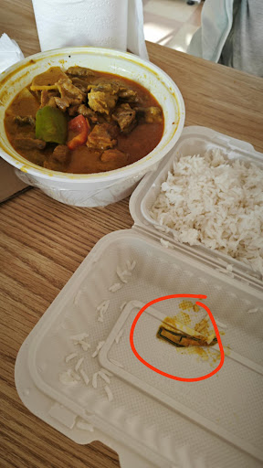 Let me clarify: picture 1 and 2 show the label I discovered when I first opened the container. Initially, we brushed it off, thinking it might just be an accidental oversight by the restaurant. However, as we were nearly finished eating, we were completely shocked to find another label at the bottom of the curry soup. As the picture 3, shows it’s clear that this label had been simmering in the curry for quite a long time. As you can see in picture 4, there are the labels I found at two different times.