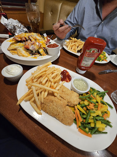 I have not been to Houston Pizza for quite a while and after this visit I probably won't be back soon, atleast not under the same circumstances. Went in on Thursday evening to sit in the dining room side and have supper. Immediately I noticed that it was incredibly loud inside due to large groups in the dining area. I was slightly apprehensive about eating there because it was other customers and not much to do with the restaurant and was probably around 9pm. We waited around at the entrance for a few minutes before being sat. The bar and dining room were filled with tons of people. The lady who sat us appeared to be the owner or a manager, I asked her if there was an event on why it was packed in there. She said that this was how it was every Thursday because they have triples on special. Well looking around I am thinking it is not asking people for ID is more so the special because most people looked to be barely out of high school if at all. About 10 minutes after being sat we had our drink order taken. I decided to try a rum and cola triple on the special. The drink showed up about 10 minutes after that at room temperature and with no chance of there being 3 shots of liquor in it (1.5 - 2 at most). I switched to water for the rest of the meal. We ordered some nachoes to split and an entree each. Most of the entrees here come with a side of caesar salad. Regardless of what you may read in this review or any other, it is all worth it to try their caesar salad if you have never had it before. The salad is exceptional. I went for the chicken fingers and fries, a solid option. I did attempt to order it without the veggies (not because I dislike veggies) but because the liquid from them turns the bottom chicken finger into a soggy mess that isn't worth eating by the time it gets from the kitchen to your table. As you can see in the photo that obviously didn't go my way. The nachos came out with the entrees which was a bit awkward. I did try and order the nachos with ground beef added. Also didn't go my way (paid for it). One thing I did not read on the menu was that the nachos had mozzarella on them. If I had noticed that I likely wouldn't have ordered them. The mozzarella holds the chips together a lot better than all cheddar and doesn't rip apart easily. But that is personal preference. The bathroom was near impossible to use because it was a revolving door of the other customers going in there to have a line or two of illicit substances. In fact, when we were heading out we learned that most (male) customers who actually needed to use the washroom went outside to do so in the parking lot. Absolutely do not bring children to this restaurant after dark on a Thursday and if you're not interested in a loud bar atmosphere I would recommend finding a different day or time to go to Houston Pizza. I did debate for quite a while if I should write this review at all. We were certainly in the minority of customers that were not looking for a bar scene and it is difficult to judge a place based on their customers. Secondly, I know that the way the economy is restaurants need to stay competitive and Houston Pizza has a strategy that certainly gets customers into their establishment which is good. I really try not to be a "Karen" with my reviews of places while still being transparent and honest. For that reason I rated it a 2 star overall but was very close to a 3 star. The food I gave 4 stars because the mozzarella on the nachos is more or less a personal preference. I do know this restaurant is capable of a better atmosphere under other circumstances and that my experinece is perhaps actually what some customers are looking for so I gave it a 2 star. I cannot stress enough, do not bring your children later in the evening. The service was truly poor. I recognize that it was busy, but the large tables of people that were much closer in type to the 2 servers working the dining area appeared to be getting rather...