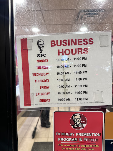 I went there between 10:16 pm - 10:49 over 33 minutes according to google maps. Worst experience ever it was cold and the doors were locked at 10:00 at night and I remember going here as a teenager/ young adult and my friend it was always open them and you can order your food hassle free and get great customer service. Well not anymore it was closed and I got back into my SUV with and tried ordering in the drive thru and he couldn't understand me and told me to pull up to the window and told me that he would not take my coupon because it's only online and said that he would not give me any food. I said to him I drove all the way here so I can get chicken for my family I would please like to get some food what could order I just wanted chicken for my wife and daughter and he told me he would give me a couple of sliders and 6 chicken pieces. I assume because they were keeping the rest of the food for online orders only! I asked if I could at least get two sides"salads" and gravy and he said sure fine. He was very rude and did not accept the coupon and refused to let me order what I wanted So instead of getting the Colonel's bucket for $36.99 ended up paying $50 dollars and when I got home there was no gravy, no side's, no fries and the chicken was old/past hold time and know because I used to work at Wendy's and A&W as the main cook manager when I was younger. The corn was burnt also. It was -58c by the time I got home and wasn't going to drive back with my family. Ended up having to eat the most disgusting meal from KFC with my family and my wife and daughter were heartbroken and felt ripped off. I would suggest that if you want good food and service to think twice about this location. What is the point of sending out coupons in the mail anymore if it's only online just wasting paper! I will never go back to this location again. I will not give them my business again. I am grateful that my family didn't get food poisoning it was so disgusting and gross. What a hassle and a ripp off. I also want...