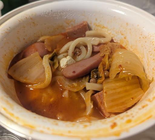Read moreI was so excited to have an "authentic" Korean restaurant open up in Regina, and ordered a nice little spread last night, for take out. 2 kimbop, reg dok bokki, kamjatang, and 2 jjigaes. A cool $100, but I'm thinking, at these prices that's probably a decent amount of food. Well, that was my first mistake. It was NOT a lot of food. After opening everything, I immediately called the restaurant wondering if there had been a mistake. The doenjang jjigae, which cost $16.95, was literally an inch deep in the bowl (see picture). There was so little of it that I successfully poured the entire thing into the same bowl the individual rice came in (of which we got one for each soup). The chef confirmed that yes, this was the normal amount. No mistake. An inch of soup for $16.95. And the flavor wasn't amazing at that. Next, the budaechigae - my personal favorite food from the years I lived in Korea (second pic). Nope. Not even close. Budaechigae is usually a HUGE pot of soup/stew with all kind of ingredients thrown in (if you're interested, look up it's history). This was an ok flavor - I'll give you that, but I've never had udon noodles in it, and again, barely any soup! For $18.95. I get that takeout cannot be exactly the same as dining in with certain dishes, but this was not that. This was just a huge, huge disappointment. Dok bokki was ok - a lot sweeter than I'm used to, but the rice cakes were good. The kimbop were fine. The beef was dry, but the tuna was good. The only really great dish was the kamjatang - a good amount, and pretty tasty, although I can't comment on how "authentic" it was since I've only had it a few times. Banchan was another solid meh. Three little sample-sized cups - apple salad, spicy cucumbers, and some plain japchae noodles - literally enough for an adult-sized mouthful. Certainly not enough to share between MULTIPLE adults who ordered 4 mains and 2 rolls. And of course, zero kimchi. I was so completely disappointed by the whole experience. Authentic Korean cuisine in Regina? Not even close. I guess we will have to continue to drive to Jeju in Saskatoon for...