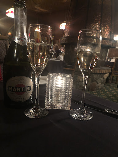 We started with a bottle of wine and shrimp cocktail - for $15, the 5 shrimp were just under frozen and there wasn't much cocktail sauce. I think it would have improved if the shrimp were more defrosted - you want that fresh seafood brininess and the weird spongey bounce and that is muted if they are too cold.