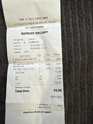 Read moreAs someone from Vancouver, I've definitely had my fair share of Asian food. I love Vietnamese food and let me tell you, this is by far the best place I have ever been to.. I tried the pho (Combination beef) and the broth is very tasty. It's full of flavour and didn't leave me dying for a glass of water afterwards. I could taste all the different herbs that they had used and the deep flavours in the soup. They didn't cheap out on beef either. I ordered #86,the Vietnamese combo with salad roll to go. Upon arriving home, I was disappointed to see that there was no salad roll. I called the shop just to be sure that I didn't mix it up, and the lady told me she would credit me back next time I was in (she took down my phone number and name). Wow. Such customer service! [update. yes i did end up getting my salad roll!] But in terms of taste, it was phenomenon. Once again, very strong flavours and no skimping on the meat! I've found my go to Vietnamese place in Regina for good. I won't be going anywhere else. Please do keep in mind that in many Asian styled restaurants, it is customary for you to raise your hand for service. Do not expect them to come to you automatically. It is just the way things are done. No complaints at all with the...