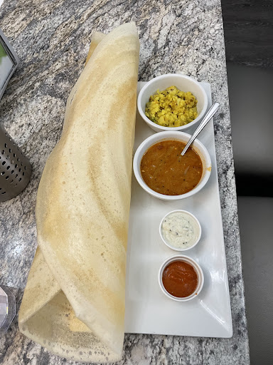 My wife initially ordered an Amritsari Dosa, but the server recommended the Szechuan Dosa, so we changed our order. The Dosa contained undercooked vegetables, and the accompanying sambar was also unsatisfactory.