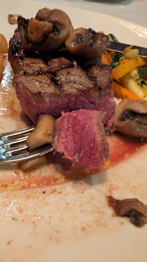 We get our meals and my $60+ steak is very well done. I went and talked to the manager and was unimpressed to say the least. He "graciously" said he'd take my steak off the bill... to which I told him that was good as I wasn't willing to pay for it. He the extended his generosity to also comp me the $7 sauce I'd ordered with the steak. Was unimpressed. Saying that, if had a chance to sample the sauce and it was pretty good.