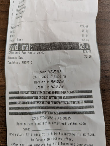 I went here coz this was the closest. I was in a hurry and i ordered steep tea with two oats (instead of saying oat milk) coz whenever i order via the tims app i just click oats i dont read the rest coz im in a hurry especially when you are only doing it at a quick stop and usually always in a hurry. The tone of the lady on the other end was condescending and kept saying what oats? I said oats im not sure coz i just usually order online and since she was asking what oats instead of finding a way to help me navigate through my order, she should’ve asked her help what do we put in a drink that starts with oats, or give me options of what oats do they have that we can put in a drink. She couldve said oh do you mean oat milk? How hard can that be? Instead she kept saying what oat? What oat? And then dead air, so because i was in a rush and didnt wanna cause delay of the cars behind me just becuase of this petty oats word , i just said mistakenly just add two sugar and two oats. I made a mistake yeah thats true (it will be super sweet) because i was already in a rush coz she was useless with her job. You know what she did? She was laughing on the other end coz obviously it was too sweet, so instead of helping me with my order since its her job to help navigate clients with the orders and verify and confirm she just laughed which i find very disrespectful she should be fired. First time to experience someone like that in a drive through especially at a tim hortons drive through. What if there are other first time clients how will you tell them or assist them with the order ? Would you just laugh at them just cause its their first time? Just cause they dont know the terms used for ordering? Although its not my first time been doing this for 20 years why not assist your clients and educate them of what your slangs or terminology used in your menu. Im sure not everyone knows your menu unless they have been ordering often. But as an employee taking orders i suggest you do your job properly and assist with your clients orders and not laugh at them when they make a mistake or if they sound like they dont know what their saying. Educate them and guide them about what you have in a very...