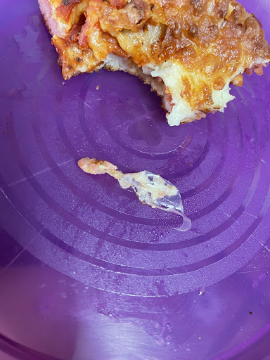 Although, I ordered a half size of dry ribs, and a medium half pepperoni and half cheese. Half side of the pizza, which was cheese, was for my 3 year old son. We ate the ribs at the restaurant, and took our uneaten pizza for left overs for the next day. It’s the next day, and I’m now sitting at the table with my son enjoying our pizza to only bite into a piece of plastic that was IN our pizza. This was worrisome as I was concerned about my son choking on any possible plastic in his slice of pizza.
