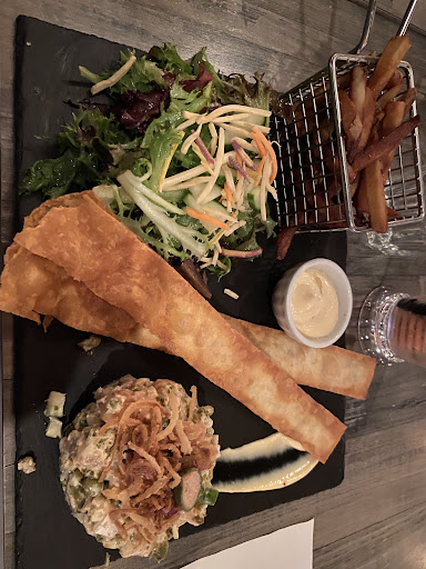 Read moreLe potage en entrĂ©e Ă©tait bon et agrĂ©able Ă dĂ©guster, et la portion plus gĂ©nĂ©reuse que prĂ©vu. Le crabcake en entrĂ©e Ă©tait bien (mais pas extraordinaire non plus). Tartare de saumon en repas (28$ vs 14$ en entrĂ©e) Ă©tait bon mais beaucoup trop vinaigrĂ© (Ă cause des cĂąpres?); je nâai pas rĂ©ussi Ă le finir.. Par contre la salade Ă©tait dĂ©licieuse! Les frites Ă©taient bonne mais ont les a trouvĂ© trop salĂ©s.