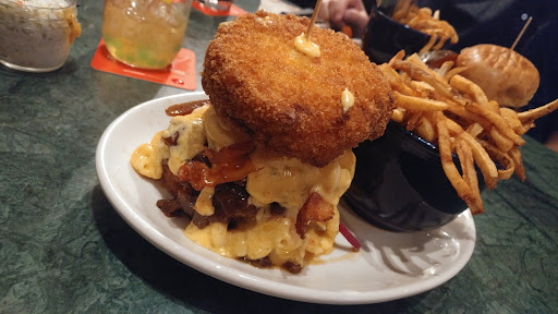 On est arrivĂ©s un vendredi soir vers 9h30. On avait fait une rĂ©servation pour deux. Quand on nous a placĂ©s, on nous a donnĂ© une table pognĂ©e dans un coin entre une table haute et une autre couple qui Ă©tait Ă moins d'un pied de nous, au lieu de nous offrir une table qui Ă©tait libre sur le bord d'une fenĂȘtre ou Ă un endroit plus tranquille et moins passant. On s'asseoit, dĂ©jĂ un peu déçus de notre place, on doit en plus subir la musique, extrĂȘmement forte, bruyante et de mauvais goĂ»t. On avait de la difficultĂ©e Ă s'entendre tellement c'Ă©tait bruyant. On a dĂ» attendre 30 minutes avant qu'un serveur vienne nous voir pour nous offrir quelque chose Ă boire. On le voyait se promener dans le restaurant aller jaser avec du monde, qu'il connaissait probablement. DĂ©jĂ 10h00 et on avait vraiment faim. Finalement il vient nous voir, et nous demande si on veut quelque chose Ă boire. On commande une boisson alcoolisĂ©e pour deux. Il ne nous demande pas nos cartes. Le serveur ne nous demande pas nos cartes et clairement, Ă notre table, un de nous est un mineur et l'autre, ne semble pas tellement plus ĂągĂ© que 18 ans. On doit attendre au moins 20 minutes avant de recevoir notre verre. 20 minutes. Pour un drink. Bref, il vient nous porter notre verre et s'en va, sans nous demander si on est prĂȘts Ă commander. Il revient 15 minutes plus tard et prend enfin notre commande. La nourriture est arrivĂ©e aprĂšs un autre bon 15 minutes ce qui n'est pas si mal. On reçoit nos assiettes et on commence Ă manger. J'avais pris le macaroni avec des ringolos. J'ai pris trois bouchĂ©es. C'Ă©tait tellement salĂ© que je n'ai pas rĂ©ussi Ă finir, moi qui finit toujours mon assiette d'habitude. Vers environ 11h20, on est plus que prĂȘts Ă partir parce que lĂ , le DJ commence Ă se penser drĂŽle en augmentant le volume de la musique, qui casse dĂ©jĂ les oreilles, sur des chansons ignobles et qui dĂ©rangent les gens qui ne sont pas ici pour faire la fĂȘte au bar. Le serveur n'Ă©tait clairement pas pressĂ© d'avoir son argent parce qu'il nous a fait attendre un bon vingt minutes aprĂšs nous avoir donnĂ© la facture. Surement qu'il prĂ©fĂšrait aller jaser avec ses petits amis plutĂŽt que de faire son travail comme du monde. On Ă©tait pas une table de vingt personnes. On Ă©tait deux et on a reçu le pire service que j'ai jamais eu de toute ma vie. J'Ă©tais pressĂ© de partir tellement j'ai dĂ©testĂ© mon expĂ©rience. Je ne met plus jamais...