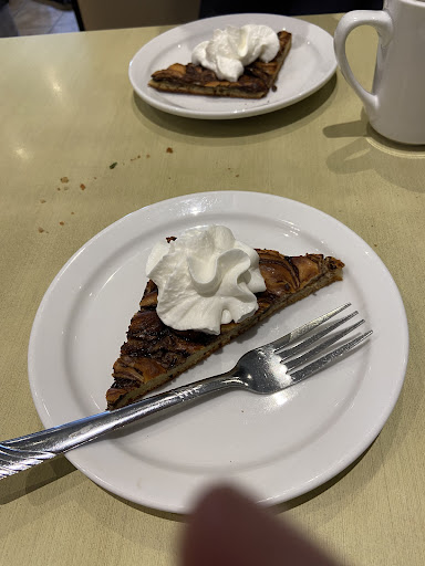 Nous y sommes allés pour « déjeuner » vers 13:00. Nous avons finalement prix deux « spéciaux » midi. Les prix sont ridiculement bas en relation avec ce qui est servi pour $13,99. Café à volonté, eau, et une soupe légumes et riz, puis pour le 1er « spécial » : filet de sole (panure mince et ultra chaude), un dôme de riz pilaf, des légumes al dente en grande quantité (carottes et brocolis), une sauce tartare manifestement maison dans une coupole en métal. 2e « spécial »: une belle portion d’escalope de poulet grillé avec poivrons jaune surmontée d’une tranche de brie fondu, en accompagnement le même dôme de riz pilaf, une salade du chef (iceberg) hyper copieuse avec des concombres en tranches, des tomates en quartier et des carottes râpées. Surprise, la vinaigrette de la salade était « maison » ( brune, légèrement sucrée, avec probablement du sésame ??? ➡️ délicieuse). Le dessert était une belle part d’un un très mince gâteau vanille marbré de chocolat, « maison » aussi selon nous, presque de l’épaisseur d’un brownie surmontée de crème fouettée commerciale. Le service enjoué, empressé, tout était parfait. Des banquettes et des tables. Du parking à profusion, le resto est dans un...