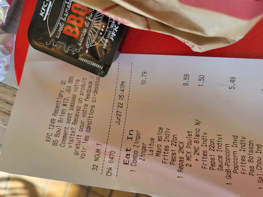 Read moreI recently purchased a bucket of KFC and was not impressed. I accept it takes sometime to go through the Drive through because of the current situation. But when I finally arrived at the pick up window, i was told I would have to wait another 20 minutes. When I finally arrived home to eat the chicken, it did not look very appetizing. When I opened the coleslaw, the containers were half full. I will never, ever buy anything from that store in Repentigny again. It is as if the staff do not care what they give clients. One star is to good of score for this...
