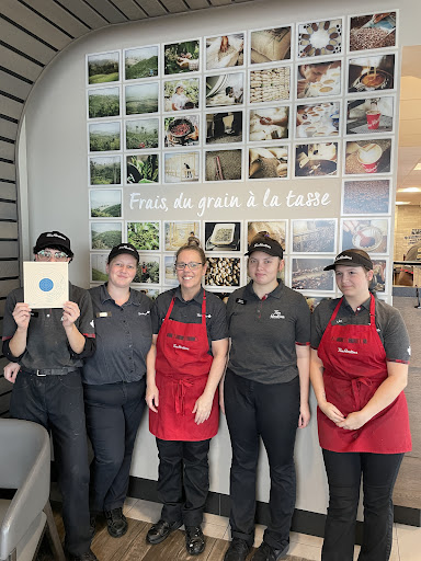 During our stop, we discovered a rich history banner detailing Tim Hortons' legacy. Intrigued by this, we extended an invitation to the staff to participate in the "Portrait of a Nation" artwork. We believe that engaging with the individuals behind the scenes adds depth to our project.