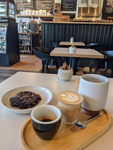 Ordered the vegan macro sandwich and vanilla oat latte which were both 10/10 in flavour. The staff were friendly, and the atmosphere was nice. However, I was taken a back by the size of the sandwich. Think a standard piece of bread, cut in half... the wait time was about 10 minutes to order, then a further 40 minutes to get my meal, which was to be expected as the line up at open was huge. They had to open late due to a planned bc hydro outage, so I hadn't eaten before their 1030 open. I finished my sandwich in 2 minutes, and had to go down the street to another cafe and order more food as I was still fairly hungry afterwards. The coffee came out relatively quickly though which I was thankful for so I had something to do while I waited for my meal.
