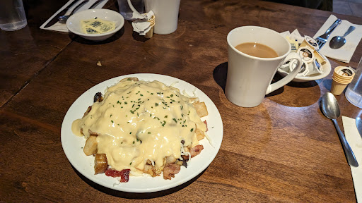 I know materials cost more now, so we anticipate costs to be up, we also expect quality to be up; I paid an additional $4 for a single piece of bacon and a single piece of processed cheese on my chicken crunch burger ($18.99 without cheese or bacon). The waitress explained that even though the burger is pictured in the menu with cheese, the cheese costs extra - I opted for it but was disappointed overall - though it wasnât âbadâ - you can see in the picture - it wasnât especially inspiring. My daughter ordered the âspecialâ poutine which was advertised at $16.99 and although we didnât complain we were charged $17.99. The gravy was astonishingly salty. My wife found the fish portions in the fish and chips to be small, though she said they were tasty.