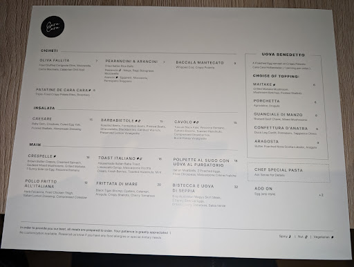 Read moreWe celebrated my birthday at Cara Cara, and I just wanted to say that it was such an amazing experience and thank you the wonderful birthday dinner. We had a big group so we took up most of the restaurant. We were warned that they may be slow and food might not come out together because they are a small restaurant. To my surprise, the appetizers came out perfectly one by one after we finished each dish. We sampled most of the apps, they were delicious and incredibly unique, it almost felt like a gastronomy tasting menu! The lingua, pig ears, trippa were so impressive because I have never really had those outside of chinese cuisine. The pastas were so so good, especially because it was fresh pasta. We tried the lobster pasta, risotto, octopus, cavatelli-- all were delicious. The elderflower lemonade was really nice as well! Pricing is very fair, portions are reasonable (appetizers are inexpensive but smaller portions, more for tasting which is great because you can try a variety), pasta portions are quite normal in my opinion. Overall, very impressed with food, service was amazing and friendly, very comfortable seating, even for kids (they had boosters), clean restaurants, nice ambience. Will definitely be back. So glad we stumbled upon this gem! Thank you for the...