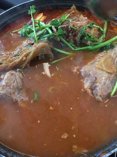 Fam-size pork bone soup: Some CHONKY cuts of pork bone and no potato in the soup (which was great). They toned down the spiciness a lil bit which I appreciated. I rmbr coming in the past w/ my friends and the PBS was insanely spicy. Ppl must've said something haha.