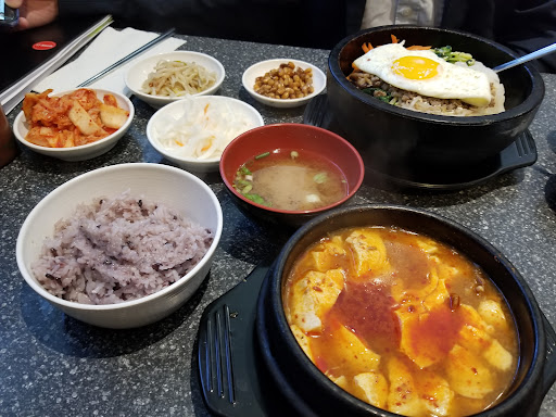 Food: Not a lot of selections, but since they are specialized in Soon Tofu that's understandable. Besides Soon Tofu, they also have dumplings, seafood pancake, pork bone soup, bibimbap, bulgogi etc to choose from. I have always come here for soon tofu. It is delicious. Tofu is very silky and the base is favorful. I choose the combination soon tofu which has beef, shrimp, and mussels. There are 5 different spice level to choose from and I usually get the medium. My husband usually orders the bibimbap and he likes it. Seafood pancake is big and tasty as well, lots of contents. Overall, the portion is good. For side dishes, they are ok, have bean spouts, radish, beans, and kimchi. One thing that I don't like is they usually give us the side dishes and our main dishes at the same time. Because the service can be slow at times, I wish we can get the side dishes first while we are waiting.