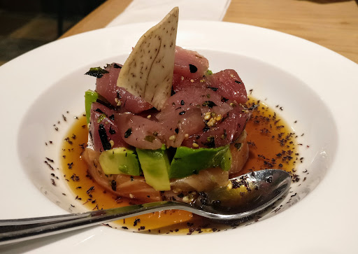 Tuna tower looked spectacular in the menu photo. Actual presentation mostly disappointed and it really was a complete let down in taste and flavour. It was just a piled cylindrical assembly of bland pieces of left over cuts of salmon and tuna dispersed with very pretty pieces of avocado.