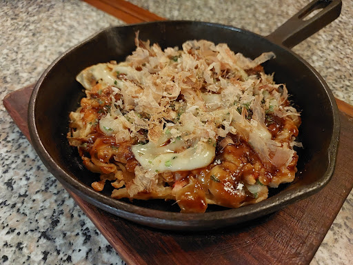 Shrimp Okonomiyaki 12.95 Pretty good, but was small. A one bite appetizer for 4.