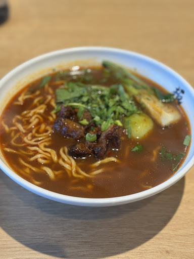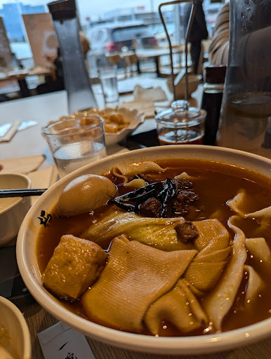 The skewers were seasoned well. All dishes came out quickly. Staff are so attentive. You are provided a hair tie and a bib. Staff check to see if the broth is to your saltiness and heat levels. So much care I enjoyed both the noodle dishes but the braided beef brisket was a the winner for me. I LOVED the Depth of the both as well as the tenderness of the brisket hunks. I also highly recommend ordering the fruit vinegar Cucumber. These are perfection. So sweet with a tad of heat. I'm still thinking about them.