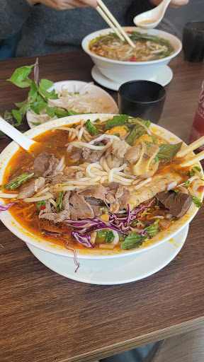 Additional notes: If you get take out, they pre heat alot of soup and portion into containers which sit on a shelf until they're ready to fulfill the order. The noodles (pho or bbh) are pot into a regular plastic folding takeout container (not a bowl with a lid). This is less than optimal as; soup is not heated to order (so if you're going back to work where without a microwave, you cant heat it if you dont have a separate noodle bowl available, eating soup noodles out of a folding container (more of a deep plate, than a bowl) is really cumbersome and can be messy.