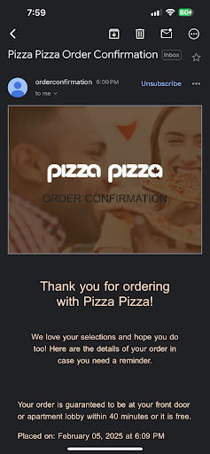 When I called Pizza Pizza on Sunday, January 5, 2025, at 9:30 p.m., to report the issue, the supervisor told me, “We can’t do anything for you.” This is absolutely unacceptable for a loyal customer who paid $30 for what was essentially bread with green pepper.