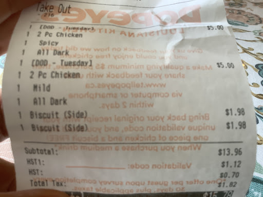 Read moreWorst Popeyes store in this area. Save yourself time and money and go to another location to order. I ordered 3 Thusday special and paid extra to have breasts instead of wings. The breast pieces were so small the size of 1/4 of an actual chicken breast. The drumsticks were the size of my thumb, and the rest of the pieces were all skin. On top of that, it was so cold.. skins were soft and soaking in oil and not edible. I decided to go to this location since it has opened recently and I assumed they're probably focusing on their food quality to attract new customers, but I guess I was wrong. The 30 minute wait time at the Elgin Mills location is...