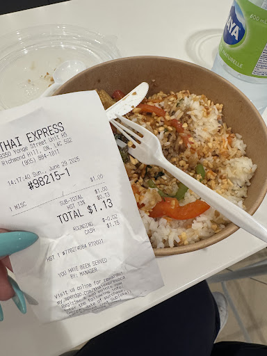 Read moreEverything was simply horrible. The staff was rude, only the food was nice and the chef was nice. My mom and I decided to eat Thai express to start off our hangout. started off by ordering the Wednesday special, which is the green curry for 14.88$ combo. My mom wanted that, and so she ordered that and I ordered the 6.25$ Mango Salad Combo. The lady was very confusing to start off with. She was an elderly woman and did NOT understand English. As we said, we ordered two combos and she charged us for both but only gave me my combo and not mom’s. I then went to ask, she started being extremely rude. The boss then stood up and my mom helped explain as they spoke mandarin. The lady that serviced us then said “I’ll gladly refund it for them. Whatever” is mandarin. I clearly was pissed off and the boss’ wife went to deal with it offering us drinks and food on the house as if we were scamming her. On top of that, the lady charged me 7.50$ for the Mango Salad Combo. The fountain machine was broken so she had to charge me for that. As well as, she never let my mom know that the machine couldn’t take two combos. But she never informed us, nor told us. We will not be coming back here. Everything was a bad experience. DO NOT COME BACK !! THEY ARE AN AGEIST FOOD STALL, THINKING ME AND MY MOM WERE HIGHSCHOOL STUDENTS AS WE USED...