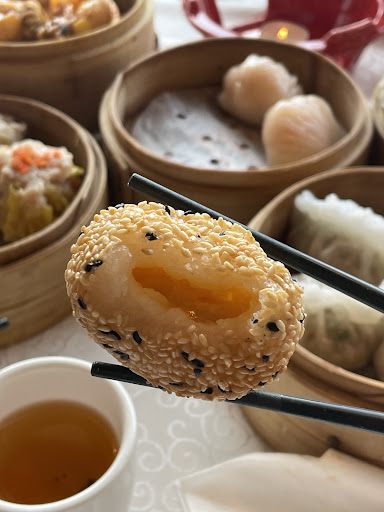 -Ginseng dumpling with soup was good but lukewarm, which means it was steamed but sitting there for a while. -BBQ Pork pastry w/ pine nuts was delicious & good size. -Hargow were big but the skin was kind of thick. -Siu mai were big but it lacked taste -The biggest ripoff is the shrimp balls, which was also listed as a special menu item. While it looked pretty in red, it was half of the size of any standard dim sum place, even smaller than their har gow & it was covered in cheap fried rice instead of the usual almond flakes. Seriously, how can they get away in charging this as a special item? -Short ribs were delicious, covered in sweet honey, likely my favourite dish. Good portion size too. -Molten Egg Yolk buns came out all shrivel, meaning they steamed it for a while and left it out to the point it became cold before serving. Quite disappointing with no lava oozing. --Seaweed Shrimp Roll was well fried & not oily. However, would prefer red sweet sauce over mayo. -Fried Shrimp Dough Roll was not bad but again lukewarm. Oyster sauce, peanut sauce and soy sauce made the dish a thousand times better. -Chicken feet were ok.
