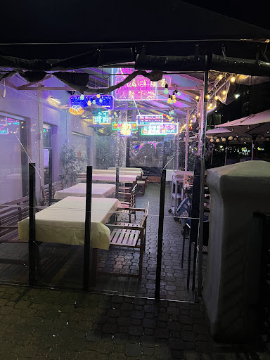 Came here for dinner. We made our reservations through WeChat. Be sure to make a reservation or you will end up waiting awhile for a table especially on peak nights like on Fridays and Saturdays. They came around with a cart filled with the classic Hong Kong style drinks and mini bottles of Smirnoff and Bailey's. We got the lemon tea and lychee. To describe the taste it tastes like lemon tea until all the Smirnoff comes down and then all you taste is Smirnoff. It doesn't really mix together. Wouldn't recommend except for pictures. We got a ton of skewers including sausages, lamb, beef etc. My most recommended has to be the Xin Jiang Lamb skewers. But beware, the first batch we got of these Lamb skewers were delicious, the second batch not so much. Would also recommend the sausage skewers. The cumin seasoning they put on top has almost a numbing yet addicting feeling to it. We got the deep fried chicken skin and also fried chicken knees. The chicken knees were really addicting. Definitely on the saltier/MSG heavy side. But VERY addicting and crunchy. Would recommend the chicken knees over the chicken skin. We got the lamb dumplings, grilled oysters, butter corn, Mala stir fried clams and Beijing style black bean noodles. Would not recommend any of those items. The lamb dumplings were really oniony and lacked lamb flavour. The grilled oysters were big and nicely cooked but not worth the price. The Mala stir fried clams were pretty numbing and the portion was quite big but felt that the flavour masked the flavour of the clams. The Black bean noodles they stir at your table which is cool but tasted not as good as it looked. The butter corn was over done, making the kernels dry. If you like durian balls I would definitely recommend them as the durian flavour is really strong and the outside taste like deep fried mochi. Very chewy and delicious. Overall: if you are looking for a place with nice atmosphere and nice neon nights. Then this is your place. If your looking for good food, I would pass on this place. There are more misses than hits. The price is also pretty expensive. Our bill came to almost $300 for 4 people and I swear we aren't big eaters... Regardless, good for a one time experience and get ready to go all out when you do go. Tip: if you are having a birthday here and want to embarrass the birthday person. Please let them know and they will sing happy birthday while...