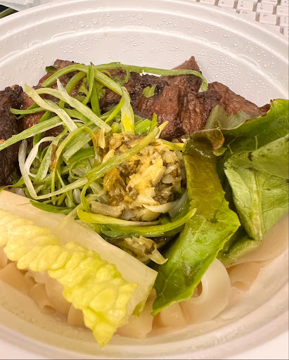 Second Experience (5 stars): A busy day at work today and I decided to grab some food for lunch at around 1:30 to heal my emotion. I grabbed the same noodles for takeout. This experience really surprised me as food (steak) was obviously improved, staff were very friendly (can’t believe 4 staff standing in front of me with friendly smile when I was paying the bill, and said bye when I was leaving the restaurant.), and parking was surprisingly easy to find. I will definitely go there again in the future if they can be consistent with the quality. I never dine-in in this restaurant and would like to try once.