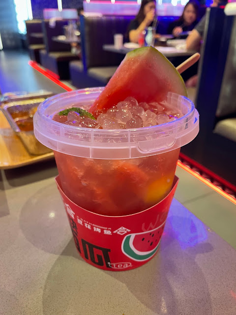 Read moreBeen there twice now. Went there once for the fish~ it’s not bad, but I won’t say it’s a must eat. We had the vine pepper one, a tad bit too spicy for my taste but my friends did enjoy it a lot! The bbq skewers and frozen yogurt cubes however, ARE BOMB!!! Went there for the second time just for the skewers and frozen yogurt and left very full and happy. Drinks: ordered a plum something cocktail the first time, please just believe and not order that. Worst cocktail I’ve had…. Watermelon drink in the photo was great tho!!!! Worth a try and very insta friendly 😂 Vibes: kinda like a nightclub if imma be honest. Lots of funky music and led strips but it’s a fun vibe...