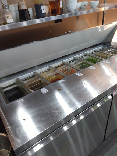 Read moreWhat kind of new restaurant is this? Came in for lunch on a Saturday. First thing noticed was a large table in a separate room had not been cleared from the previous evening. Bathrooms in the same condition, although new, they're not regularly cleaned and wiped down. Garbage cans are also full. Next, the sauce counter is not wiped clean also, with the containers almost empty from the previous day. We were there nearly 2 hours for lunch, and the earlier tables who had already left were kept unclean too. What's up with that? Is this a serious restaurant operation? Btw, the food, considering all the competition nearby, is nothing to write home about. Pricey too!