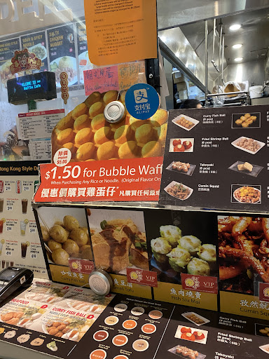 However, I love their bubble waffle,and the milk tea. I also love their fish balls and curry. I only order the same thing so I can't say for sure how good their other menu items are. I tried their chicken meals but not a fan of that since I'm biased towards their curry and oil rice. The softness of the meat on my first few times eating here was better, and I'm not sure if the quality of the food has gone down, it's still very tasty though, especially the sauce! Every other month, I would find myself craving for the familiar taste, and it doesn't...