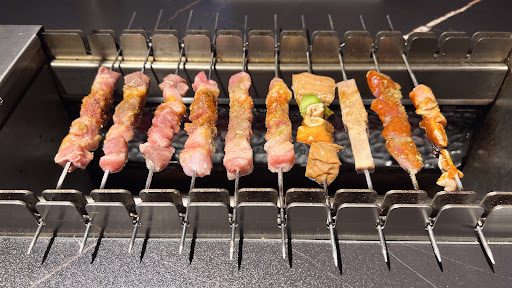We ordered a variety of skewers: lamb, pork belly, salmon belly, beef, Wagyu, honey and spicy chicken wings. All of it was delicious! The price was decent for the quantity and quality of food. They also give you an ice cream desert at the end.