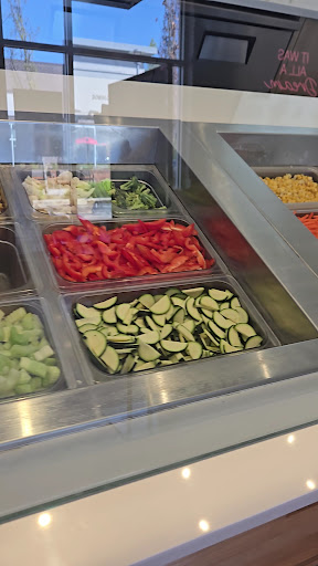 However, I might start coming here less now. More recently I have felt that they are more stingy with how much vegetables they put on your plate. It starts off with spinach and kale (they'll put about 4 leaves of each). If you ask for "a bit more" they grab maybe 2 or 3 more leaves. I have to do this with each vegetable as I move down the line. How much you get really depends on who is filling your plate. Today, after I filled my plate, the guy asked me if it's ok that I'm charged more for the extra vegetables. I honestly didn't think I asked for that much more than I normally do. It's roughly the same amount compared to my previous 10+ visits there. I told him no I'm not ok with that, so he didn't charge me extra in the end. To them, "more" vegetables is like 2 extra leaves of spinach, 3 leaves of kale, 2 extra broccoli, etc. The onions and red pepper are already sliced so thin. "Extra" zucchini is like 3/4 of a slice of the zucchini.