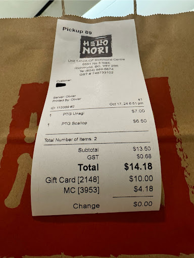 Read moreI had the pleasure of attending an event that was catered by Hello Nori in August. On a rainy Saturday night, we didn't feel like wandering far and I remembered hearing Hello Nori had just opened in Richmond so off to the mall we went for a late dinner.