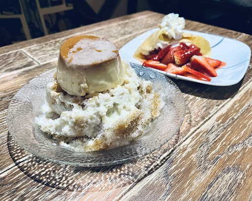 My wife and I were impressed by their Strawberry Crepe and Caramel Pudding over a milky slushy. The crepe was made to order with fresh cream and fruit. The Caramel Pudding was melt-in-the-mouth and its sweetness meshed with the refreshing shaved ice beneath it.