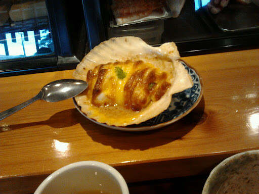 The tamago was okay, just very poorly seasoned; not true to standards normally met, like it was just egg instead of egg whisked with mirin, salt, a bit of sugar, and whatever other magic restaurants normally put in. The agedashi tofu was okay, a little smaller and harder than I'm normally served, nothing special. The chicken teriyaki and tempura were okay; the chicken was a tiny bit dry but it was tasty. Tempura was basic, okay. We did not finish the teriyaki or tempura. The bacon wrapped scallop robata was good; though with the combination I imagine its be pretty difficult to make awful; to credit it though, the sauce was good. All the cooked foods were better than the sushi.
