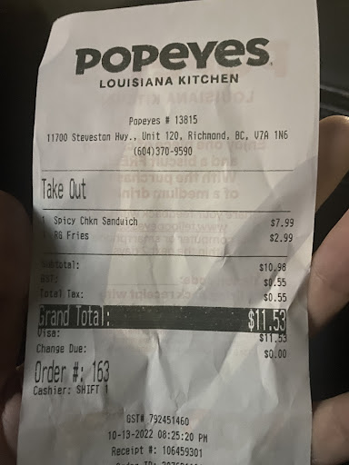 The food itself was delicious, as expected from Popeyes, but it was Jasleen's exceptional service that made the experience memorable. Her positive energy and willingness to assist made me feel valued as a customer. I left the restaurant feeling satisfied not only with the food but also with the overall experience.