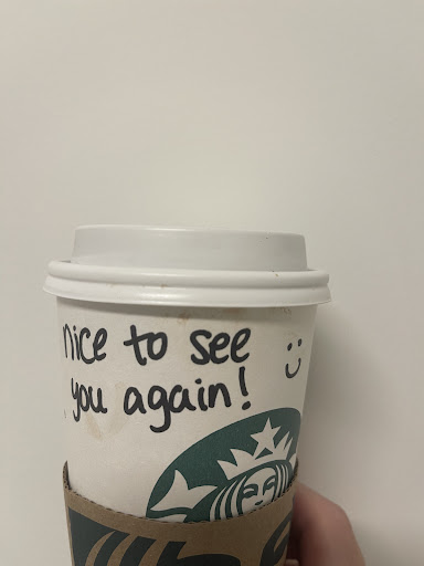 Apparently the new initiative by Starbucks is to return to the local coffee shop vibe & personalization w/ a people connection, & this staff truly exemplify so. I didn’t catch her name unfortunately on both visit but she was warm, genuine & friendly. It’s notable. The second time I visited there was a nicely written “nice to see you again!” Smilie face which was a nice touch.