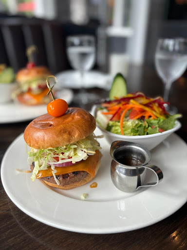 Read moreWe picked this place at random from a Google map, and my expectations weren't super high, but I ended up being impressed. Off the bat, the building exterior is lovely, as is the mansion-ridden road that takes you there. The interior is obviously built partly as an event space, but it didn't detract too much from the plush styling, and the view of the golf course is breathtaking! Everything on the menu is highly affordable, but seemingly good quality. I had a Prime Rib Burger with garlic fries. The words "prime rib burger" are almost a cliche on restaurant menus, and seldom anything to write home about, but this might be the first time I ever stopped and took notice of the juicy burger patty. It was thoroughly enjoyed, as were the generous helping of garlic fries. My gf had the Beef Dip and was also pleased....