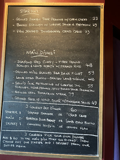Read moreHad a lovely belated birthday dinner in a very inconspicuous, unassuming and industrial location in Richmond. It is a fusion of Chinese and Italian cuisine and although it sounds a bit odd, the chef executes it quite nicely. We essentially made our own 5 course tasting meal and started it off with the corn and seafood chowder; wow was it ever amazing. The corn was fresh, sweet and crunchy, the chowder base was creamy and full of seafood flavours. It had scallops and tiger prawns. We then moved onto our 2nd appetizer of calamari! The coating was light and flavourful but not overpowering; the sweetness of the squid was still very evident. It sat on a bed of fresh salad and sweet red onions; just so perfectly crunchy. Our 2 mains arrived in a timely fashion. We had the miso glazed grilled seabass fillet (with mashed potatoes, asparagus and broccolini) and the pan fried linguine with prawns (olive oil, jalapeno, Chinese back bean). The seabass fillet was just seared so perfectly with a crunchy skin, the body was buttery and flaky. The mash potatoes were a bit of a miss for me (rather bland), but the pan fried linguine more than made up for it. I was floored when I had my first bite. The garlic, the spice, the subtle Chinese black bean flavour all worked harmoniously and it was just unreal. I could not believe this rather "simple" looking dish had so much flavour to it. I would go back for this linguine dish alone. We capped off our dinner with the chocolate soufflé. Can't say I'm an expert in soufflés, but the chocolate flavour was on point and had bitter notes to complement the mild sweetness. I would definitely return to this little café, which is only open during dinner hours and has maybe 30-ish seats in total. I would say the corn and seafood chowder, the calamari and the pan fried...