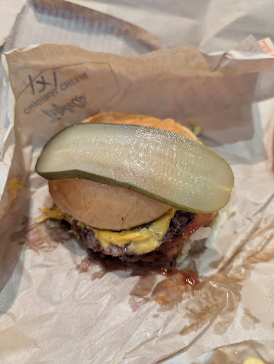 OG review: I had to pay 25 cents for a bag, McD's, Wendy's, literally no other fast food establishment charges this why? How the hell can I carry a bunch of items without the bag. If we are pretending it's about the environment please behold this glorious massive piece of single use plastic for fries lol. I'd suggest get at least a double patties they are paper thin. I'd skip this place. Also good luck finding a table in that area god help you if you didn't splurge for the paper bag or you're screwed. I watched people drop their food items fumbling around looking for a spot because bags Louis Vuitton here.
