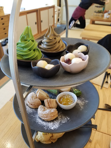 Delightful high tea experience. If I could give 4.5 stars, I would. Staff answered the phone quickly and told me that high tea reservations are easy to book during the week but might have a wait for weekends. I brought my mother and 90 year old grandmother to share the Tsujiri high tea experience with me for the first time on a Thursday at noon. There were several of us waiting for the doors to open at 12pm; staff did not acknowledge the line and opened 10min late. If they could have allowed us to enter to sit and wait at a table then that would have been more comfortable.