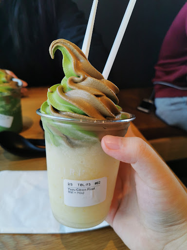 The Yuzu-Citron float is a slushy-like citrusy drink with matcha ice cream on top. You have the option of matcha, houjincha, or a swirled mix of both as your ice cream flavours. I opted for the swirl mix as it was my first time here. I actually quite enjoyed the ice cream on top, it was delicious and I definitely love matcha ice cream and soft serve ice cream overall. The citrus slush on the bottom tastes very lemony and you can drink it with the straw provided. Price: ~$7-8