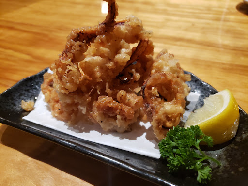 We ordered shareable dishes that were so fresh and delicious, like the deep fried squid tentacles, seared salmon nigiri, grilled short ribs (I had to order seconds because of the quality in taste, it was really good), prawn tempura, deep fried chicken skin, chicken gizzards, seared toro nigiri, ebi sunomono, Oyster motoyaki (really delicious), and last but not least for dessert we got a scoop of the house green tea and mango icecream. I had to get seconds because one scoop wasn't enough!