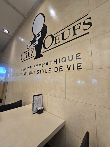 Read moreFound Chez Oeufs on a Google Maps. The staff was friendly and expeditious in getting us seated. The atmosphere has a essence of whimsy about that I found refreshing. Loved the light fixtures resembling cracked eggs. Our waiter always had a smile on his face and was very patient with our attempts at speaking French :) The menu offered great choices from omlettes to waffles to crepes etc. The serving size made this a good value. I would highly...