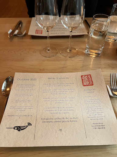 Read moreLe meilleur restaurant de la ville de Rimouski et c'est peu dire. J'oserais même dire dans l'est du Québec et bien des restaurant à Montréal devraient aller se cacher. Le Restaurant Narval à Rimouski est un endroit gastronomique qui met en valeur les produits sauvages et du terroir de l’est du Québec. Une expérience unique avec un seul menu fixe qui changent au gré des expérimentation du chef Norman St-Pierre. Préparez-vous à vivre une expérience inégalée dans des sphères buccales insoupçonnées. Des accords hypers originaux entre des produits locaux, des cueillettes de comestibles sauvages et des arrivages de produits frais. Un restaurant haut de gamme qui n'ouvre que le soir et que quelques jours semaines. Un horaire très restreinte qui va vous obliger à devoir réserver. Le carnet de réservation est par moment complet sur plusieurs mois d'avance. Un autre point fort c'est un apportez votre vin. Pour ma part, je prends toujours le temps de bien consulter le menu pour faire un choix d'accord d'un vin, cidre ou spiritueux québécois pour rendre hommage a ce voyage culinaire hors dimension. Préparer à consacrer un bon deux à trois heures pour maximiser les bienfaits de cette trajectoire culinaire ! Un restaurant digne des plus grandes adresses et le meilleur pour honorer la personne qui partage votre vie. Sinon, allez y avec des ami.e.s. Si vous cherchez un endroit pour déguster des mets raffinés dans une ambiance agréable et feutrée, le Restaurant Narval est un excellent choix gastronomique...
