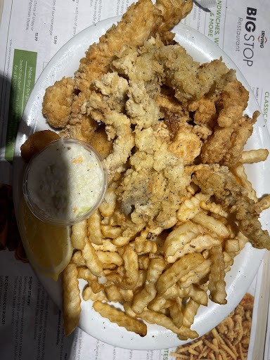 Read moreEveryone told me not to try the seafood here because thereâs so many other places that are fresher and CHEAPER but despite, I tried it and Iâd say itâs pretty filling, itâs good, I wouldnât give it a 10/10 if you are seafood fanatic but if youâre craving a platter, it will suffice! The fish is as good as it can be for the way itâs made and the type (frozen for sure), the shrimp was fried nicely not soaked in much oil, the scallops were also good, the clams were meh! They were a little sandy and the texture was just not there for me, definitely enjoy Comeauâs clams better. Overall, I would still recommend this for a quick easy fix for a seafood platter! Itâs in a convenient spot and given they serve A TON more options and seafood is not their specialty, they did well. Tartar sauce was good and coleslaw...